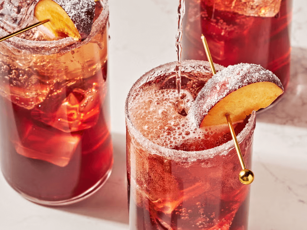 Spread sugar on a small, shallow plate. Pour simple syrup onto another small, shallow plate. Dip rims of 2 tall glasses in simple syrup, then roll rims in sugar, holding glass at a 45° angle.
